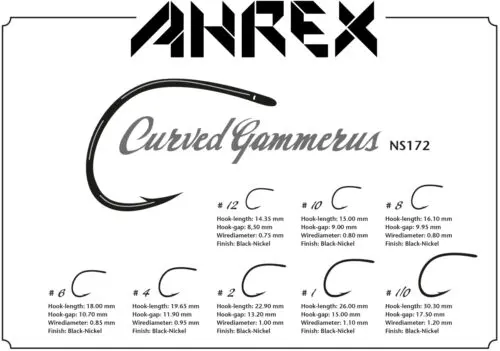 Der Ahrex NS172 – Curved Gammarus – ist ein Hakenmodell, das sich optimal für das Binden von Gammarus-Mustern (Flohkrebs-Unterordnung) eignet. Selbstverständlich eignen sie sich auch wunderbar zum Binden von Süßwasser-Bachflohkrebsen. Forellen lieben diese kleinen Beutetierchen! Der kurze Hakenschenkel in Kombination mit dem weiten Hakenbogen eignet sich besonders gut für die naturgetreue Imitationen jeglicher Gammaride (Flohkrebse) – aber der Kreativität sind wie immer keine Grenzen gesetzt…