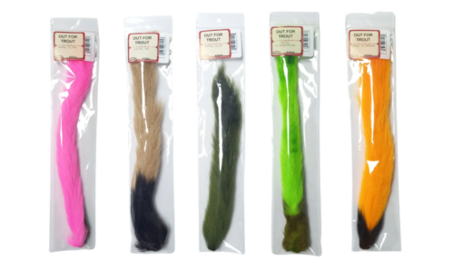 Kiptail (Calftail) – unterschiedlich gefärbte Kalbsschwänze – eignet sich hervorragend, um tails kleinerer und mittlerer Fliegenmuster herzustellen. Viele Farben sind auch uv-aktiv und geben einem Fliegenmuster somit das gewisse Etwas…